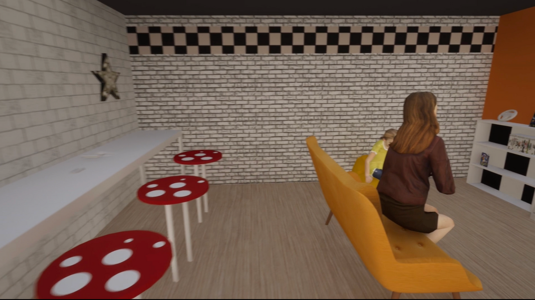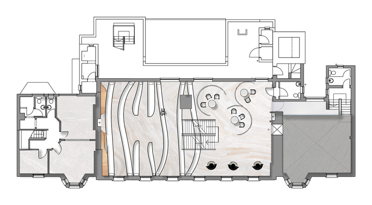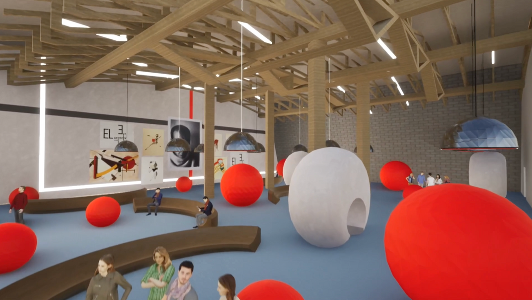 Below is a library space with arches inspired by the honey-hive shape. Honey has antibacterial and healing properties. Visitors can attend to read deeply about natural wellness.