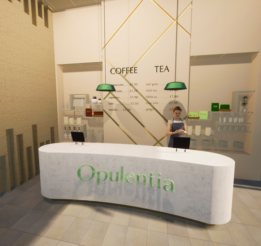 The Opulentia shop sells natural spices, herbs, ceramics and wholesome snacks. Spacious for easy circulation and navigating the shopfloor.