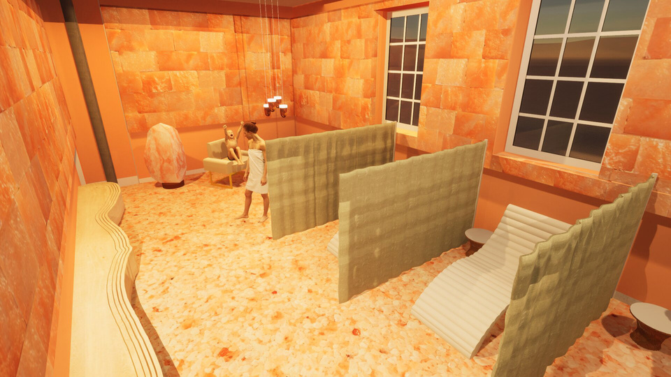 Relaxing in the salt spa room helps to clear the lungs and airways. Designed to help those with breathing issues.