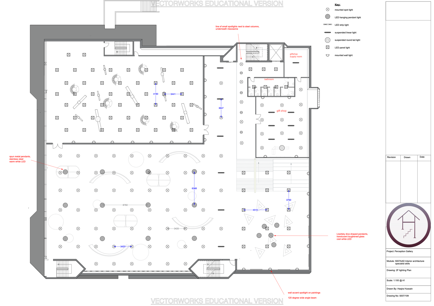 She demonstrates a range of skills with each project, including Sketchup, Vectorworks and Adobe Photoshop, Illustrator and Indesign.